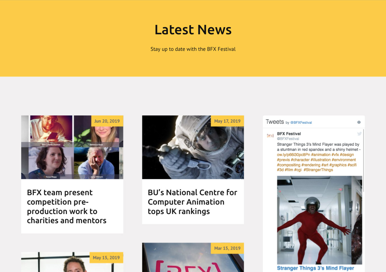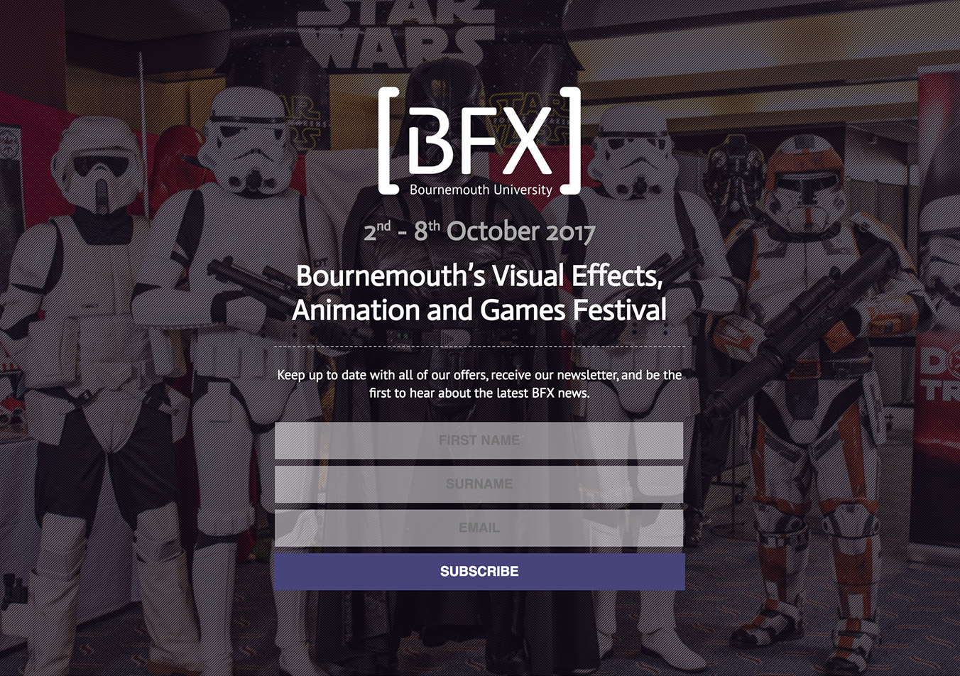 BFX Festival, supported by Bournemouth University, is a week long event designed to celebrate VFX, Animation and Games, inspire the next generation of talent and share the latest knowledge. They required a clean and responsive website, aimed at visually stimulated people, with the intention of selling tickets to the UK's largest visual effects, computer games & animation festival at the BIC.