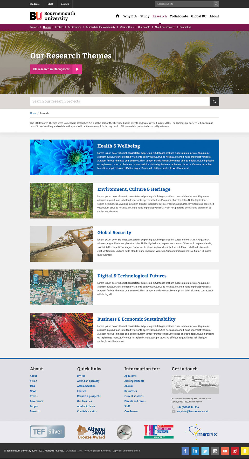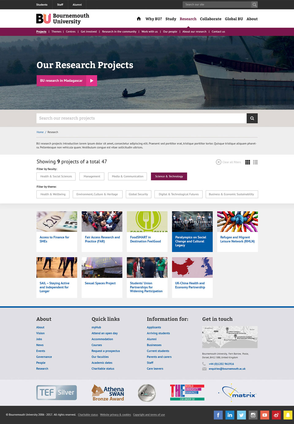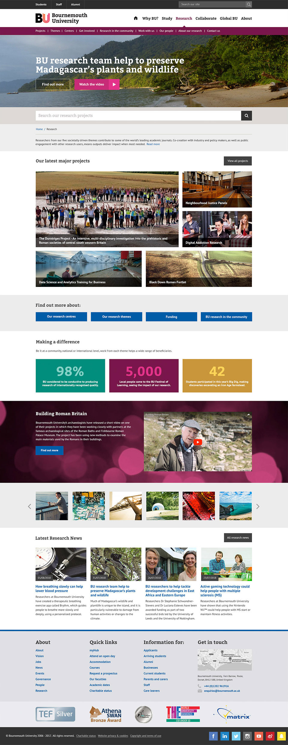 As the digital development team leader at BU, I worked on many design and build aspects of the main website. Every new design or functionality introduced to the site was carefully considered through research and ux design processes with regards to scalibility across the site and accessibility for it's users.